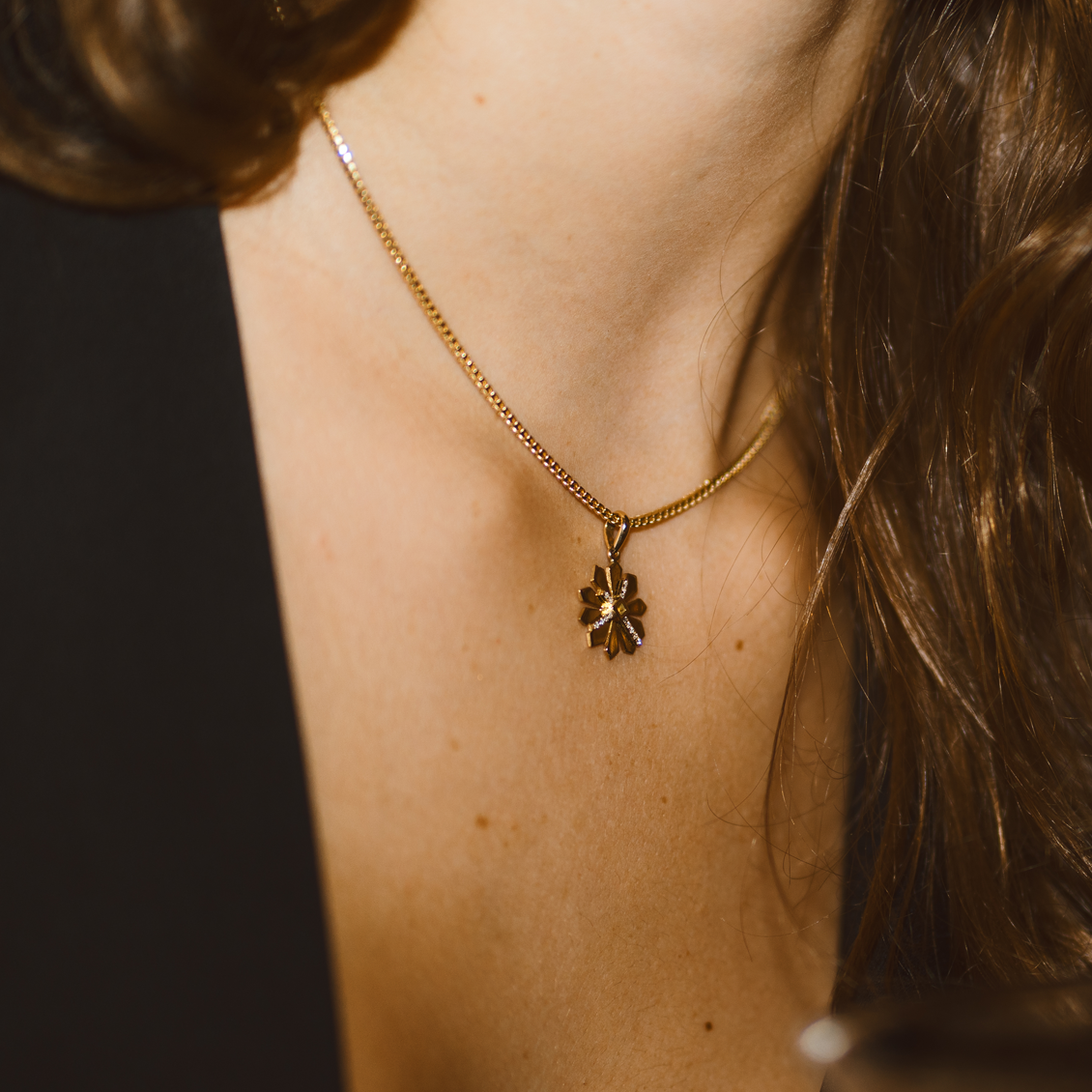 Dije Magic en oro amarillo de 18K flor geométrica con brillantes de 0.042 carats en total