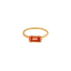 Anillo Amelia oro amarillo de 18K con granate corte esmeralda