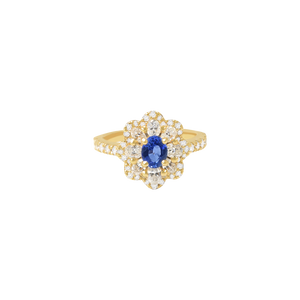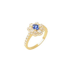 Anillo oro amarillo 18K tipo Lady Di con zafiro oval