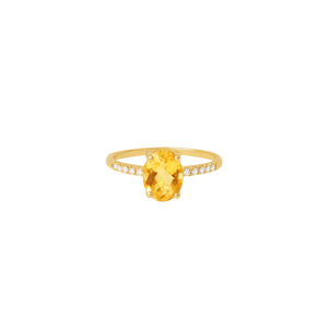 Anillo oro amarillo de 18K con citrino oval 1.27 carats en total con brillantes laterales 0.075 carats en total.