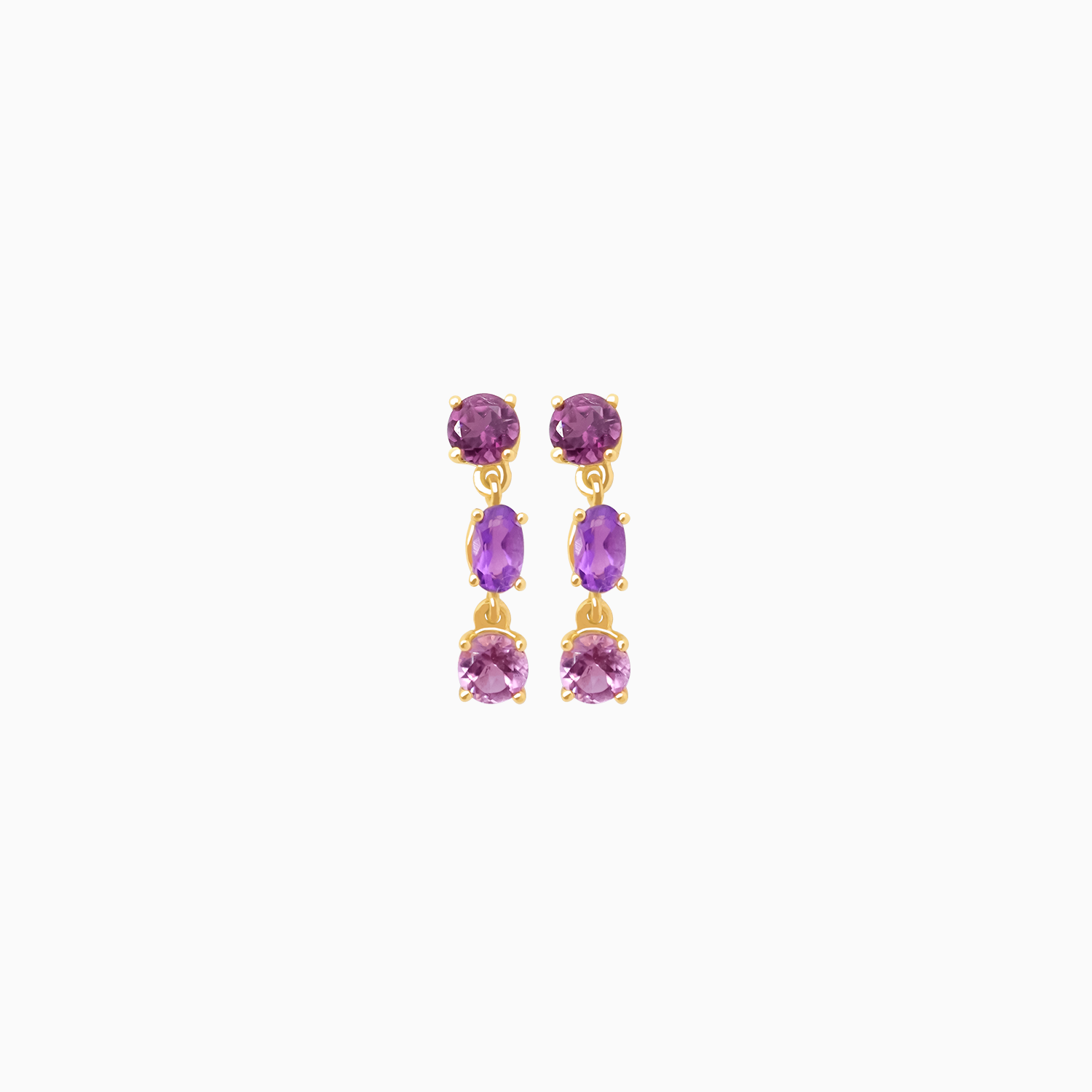 Aretes en oro amarillo de 18K, colgantes con amatistas redondo y ovales 1.42 CT