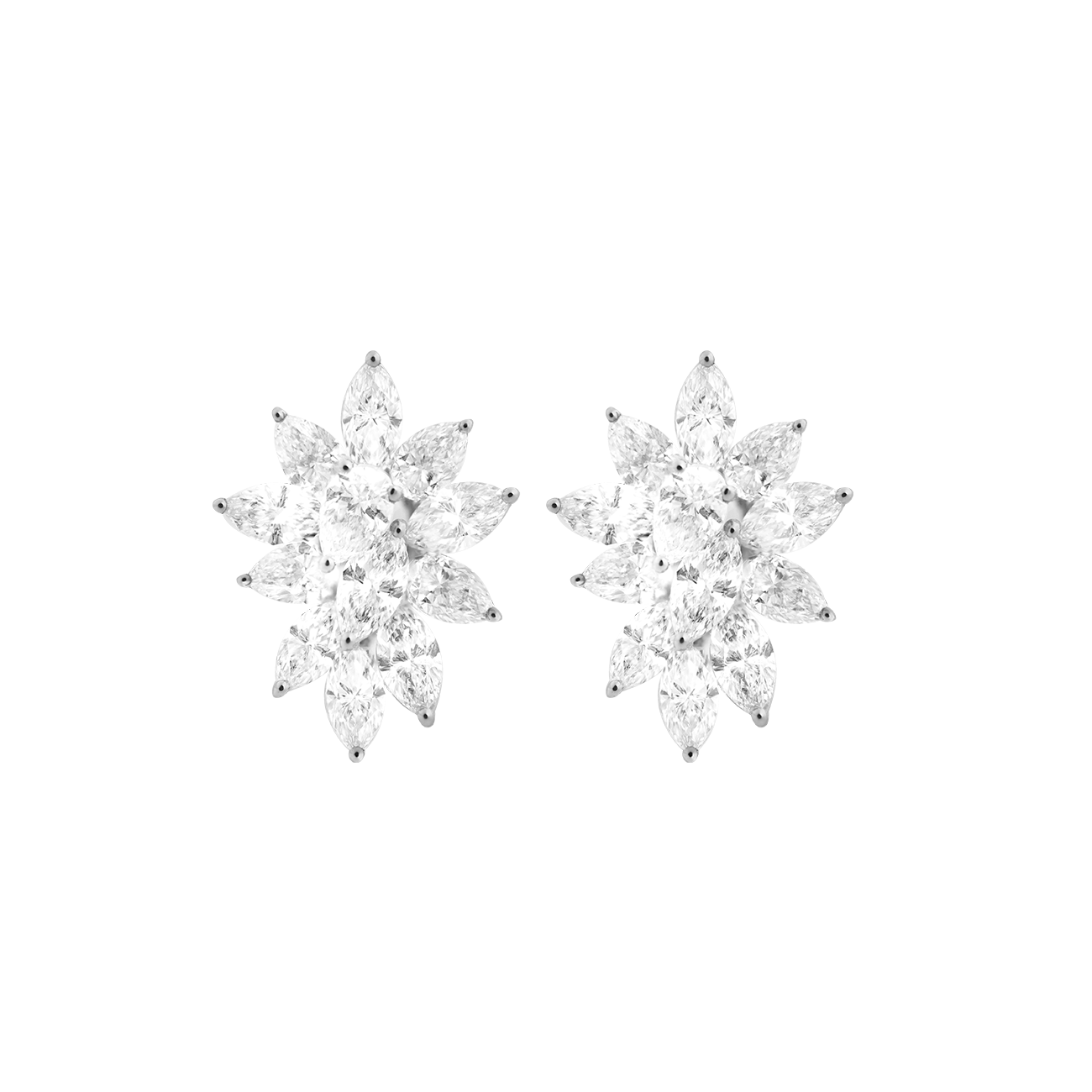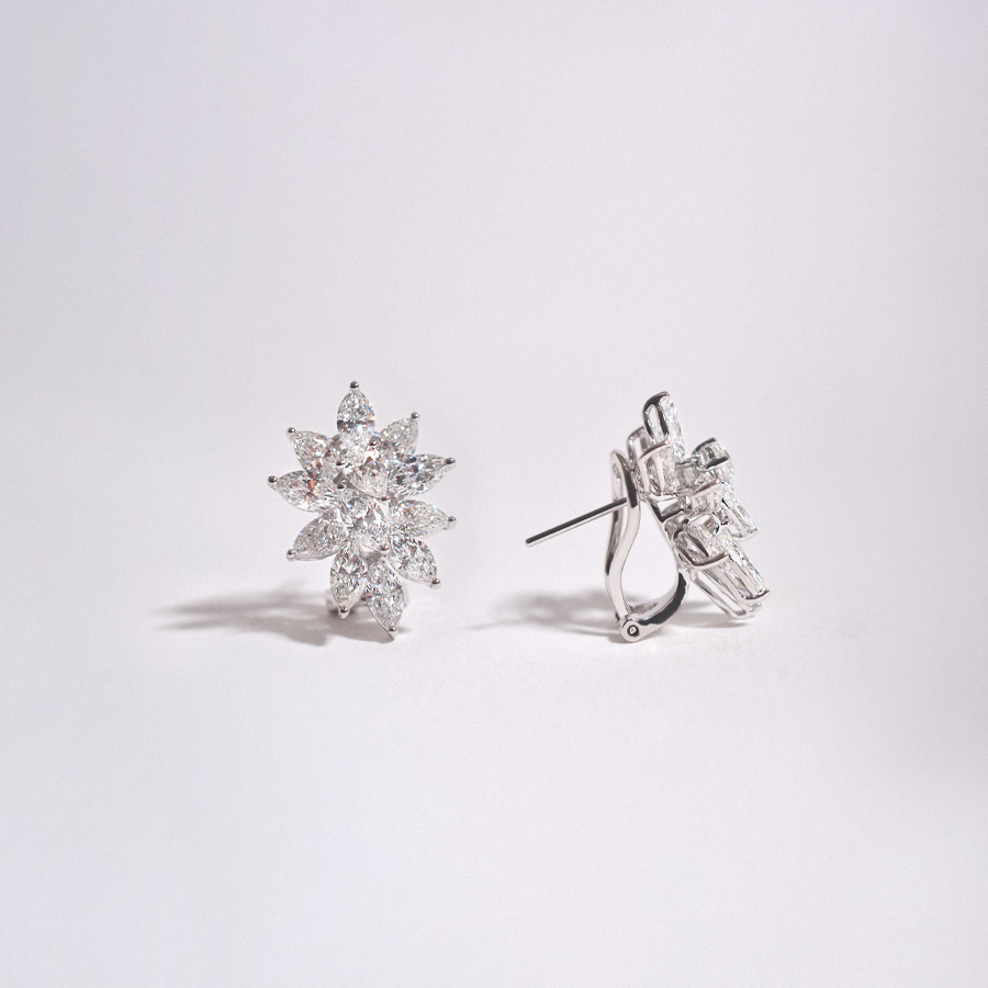 Aretes marquesitas en oro blanco 18k con brillantes marquises 3.50ct y brillantes peras 2.50ct con topes omega