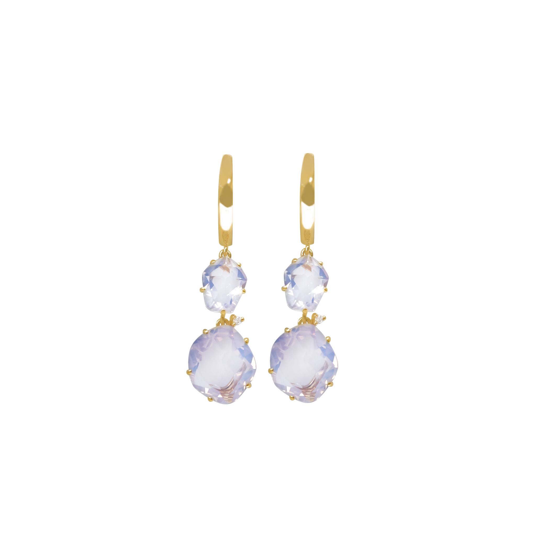 Aretes oro amarillo 18K con argolla y ópalo lila pentagonal