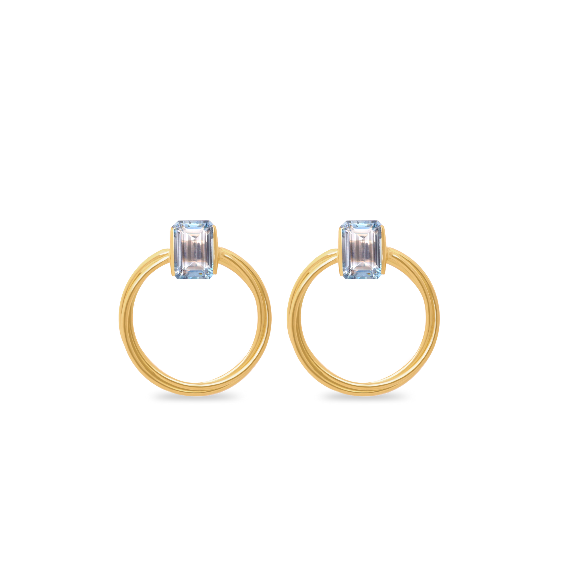 Aretes en oro amarillo con topacio azul y entrelazado con corte esmeralda 3.0 ct