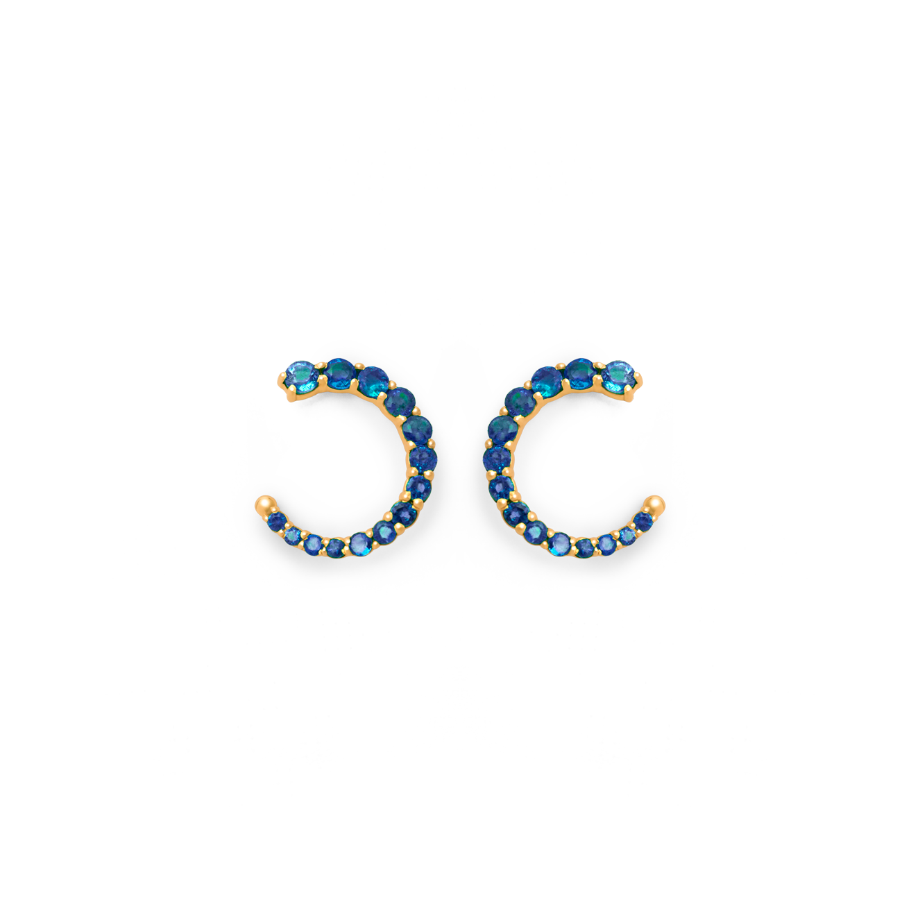 Aretes en oro amarillo de 18k media argolla con zafiros