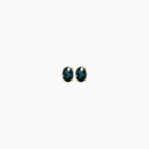 Aretes oro amarillo 18K con 4 uñas turmalina verde azulado 0.64 carats en total.