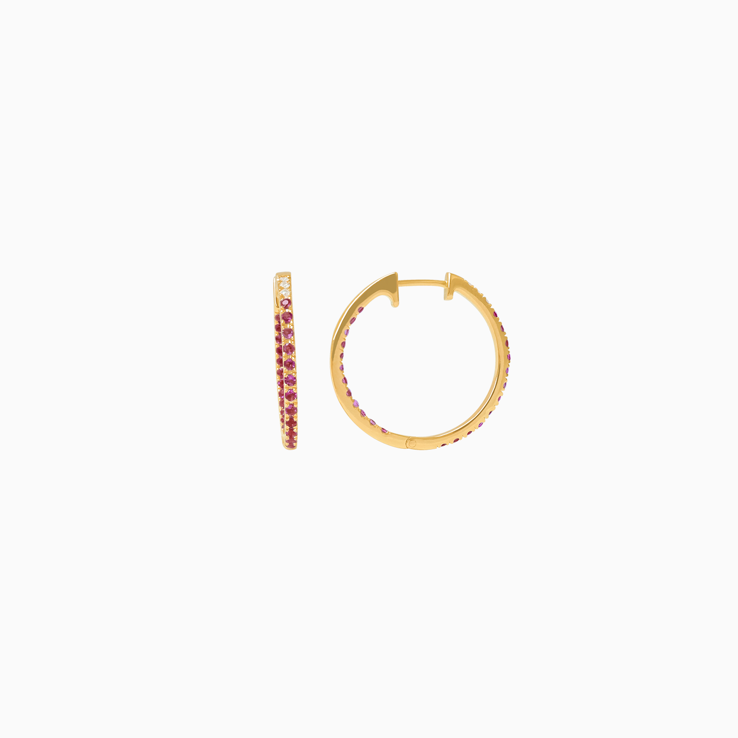 Aretes oro amarillo 18K argolla con turmalinas rosadas y brillantes