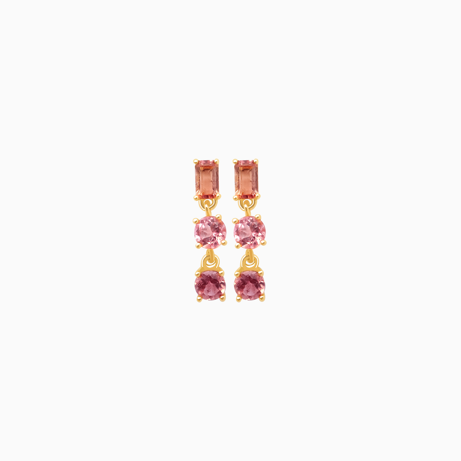 Aretes en oro amarillo de 18K, colgantes con turmalinas rosa corte baguette y redondo 1.60 CT