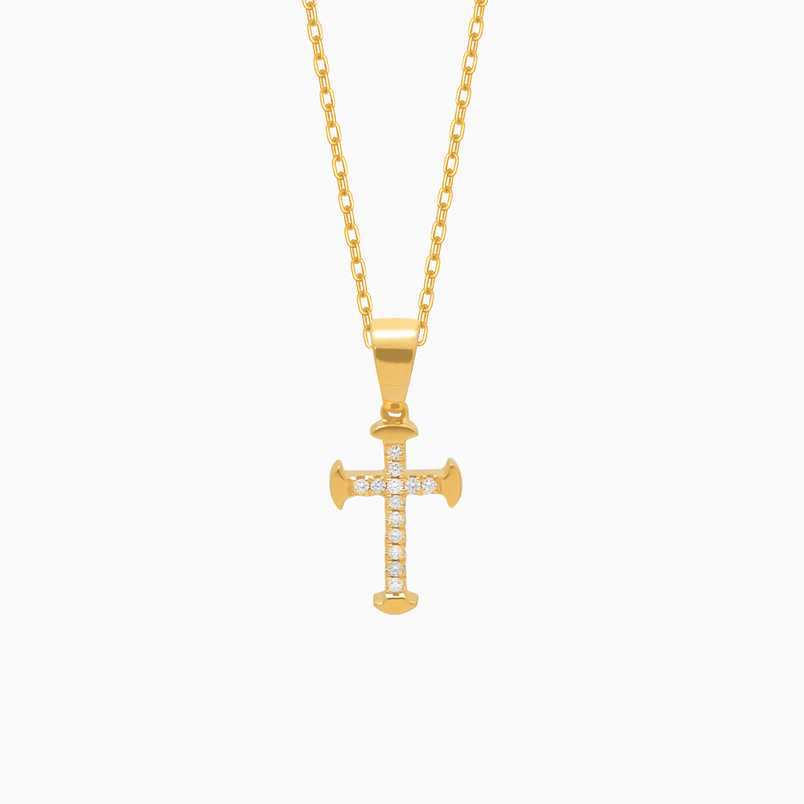 Collar oro amarillo 18K con dije cruz con brillantes 0.06 CT y cadena rolito diamantado 1.1 mm - 45 cm