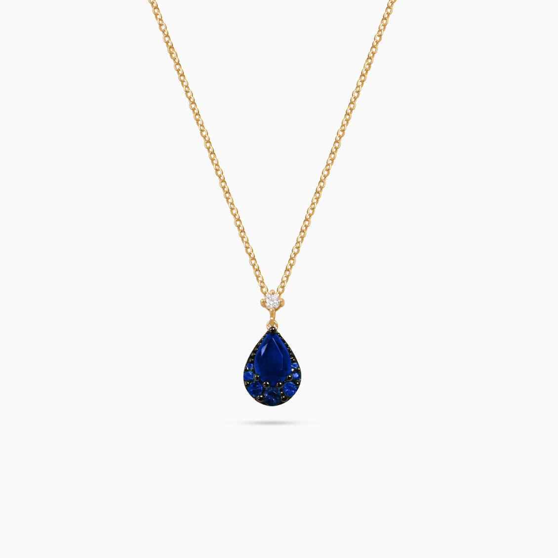 Collar oro rosa 18K con zafiro pera 0.65 carats en total y zafiros redondos 0.15 carats en total y brillante 0.03 carats en total.