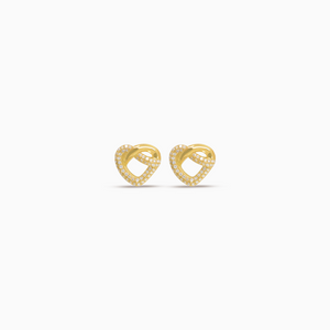 Aretes oro amarillo 18K nudo corazón calado con brillantes