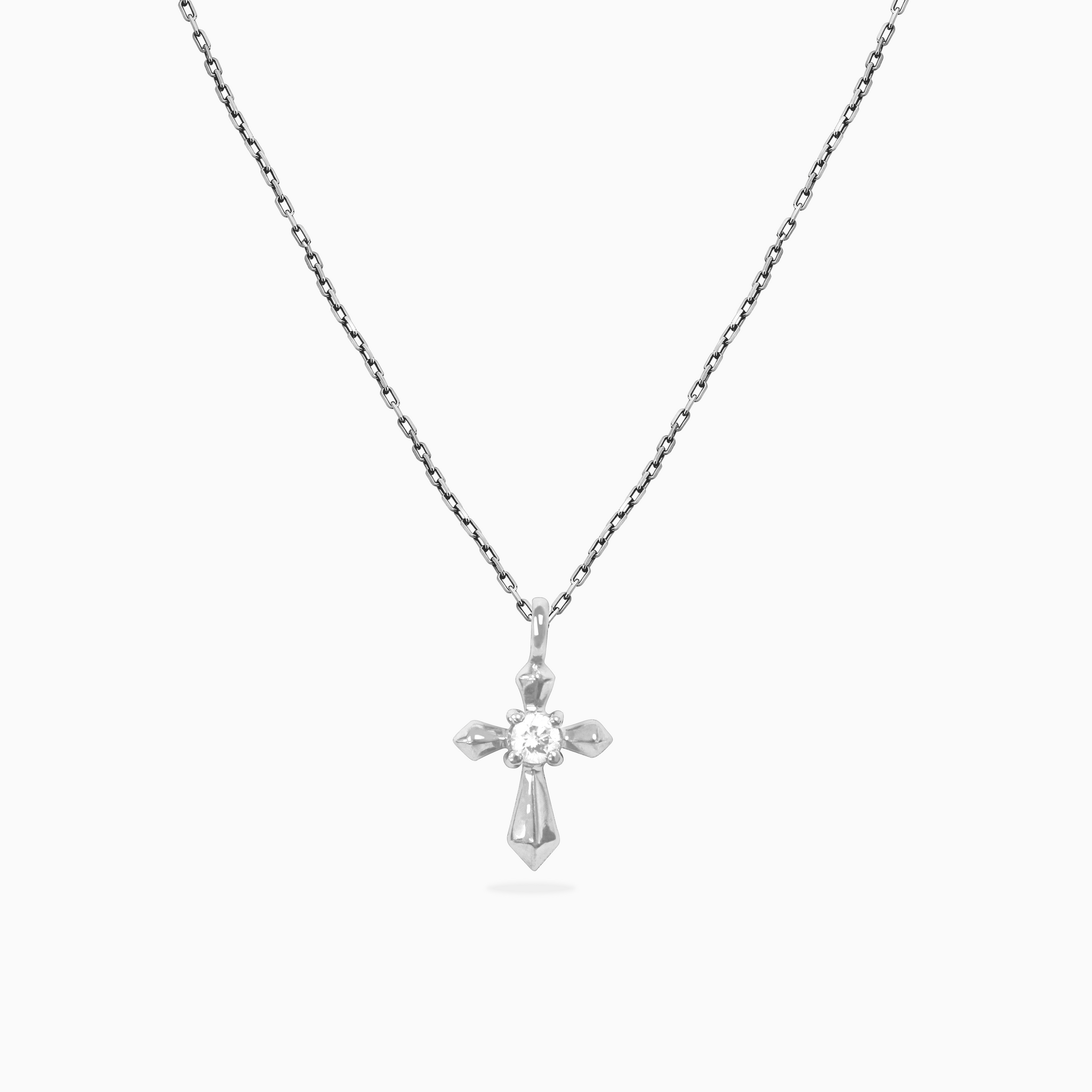 Collar oro blanco 18K con dije crucifijo con brillante 0.08 carats en total.