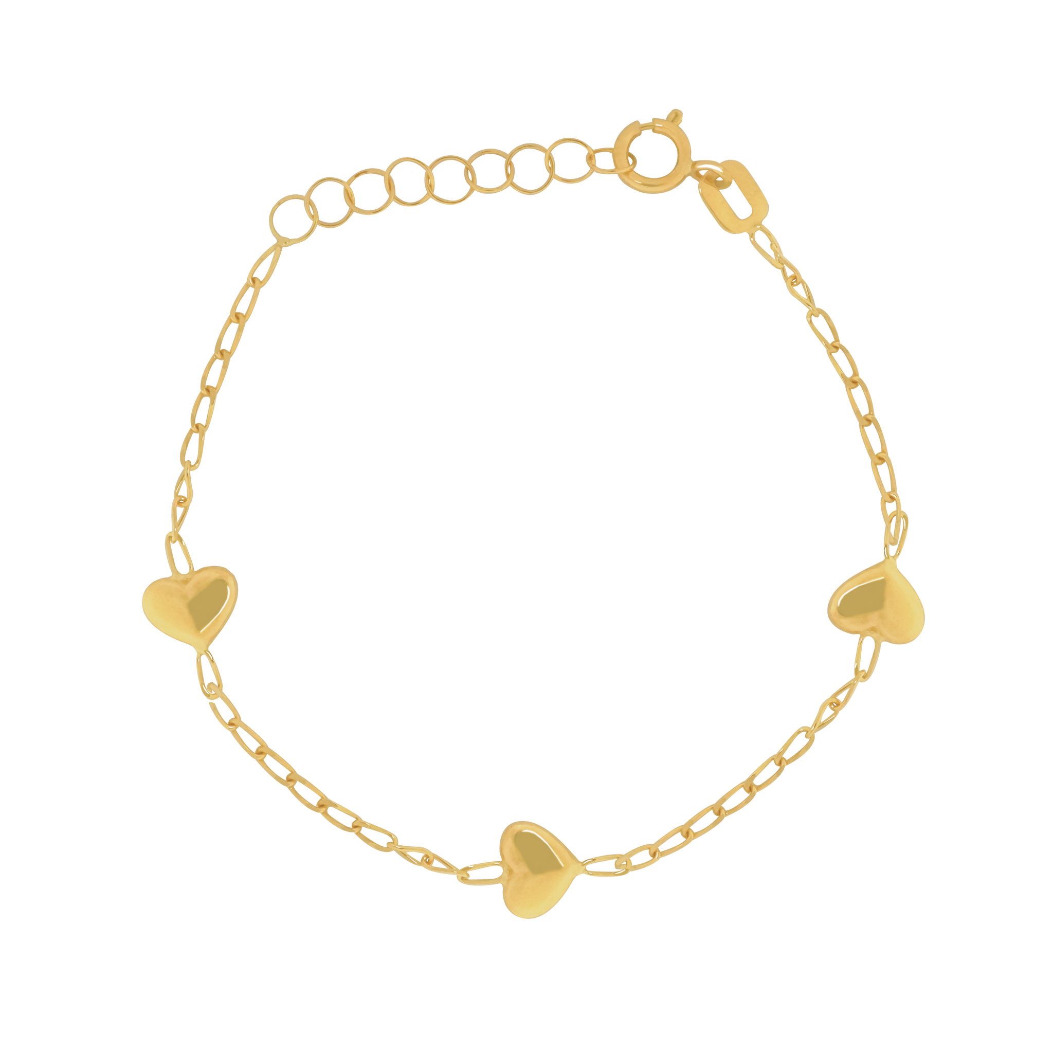 Pulsera oro amarillo de 18K con 3 corazoncitos intercalados con cadena.