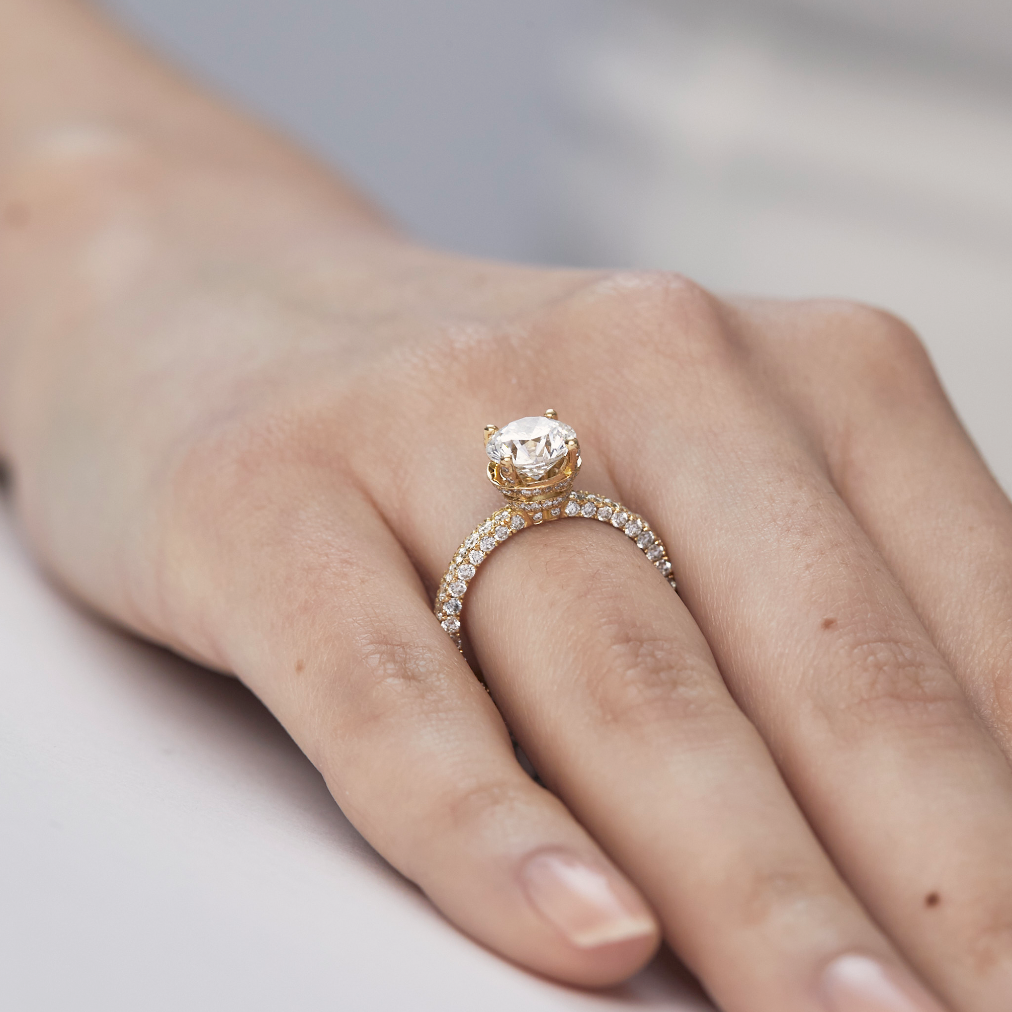 Anillo en oro amarillo 18k solitario modelo premium con brillante central 1.70 carats, con brillantes laterales con Gia y brillante interno.