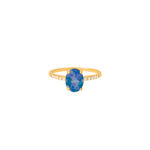 Anillo oro amarillo de 18K con topacio azul london blue oval