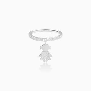 Anillo oro blanco 18K medio rivière con niña colgante