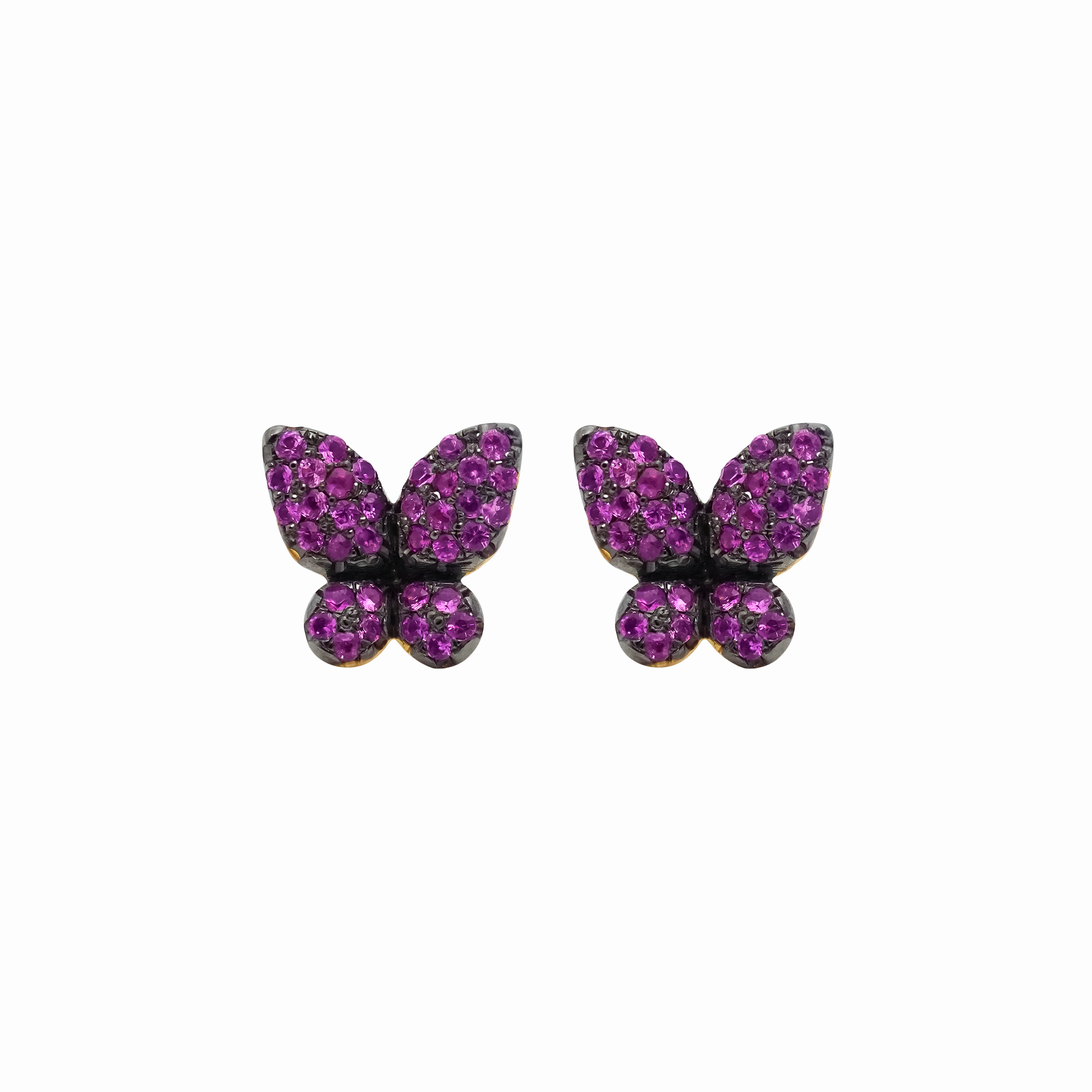 Aretes en oro amarillo 18K mariposa con zafiros rosados y rodio negro