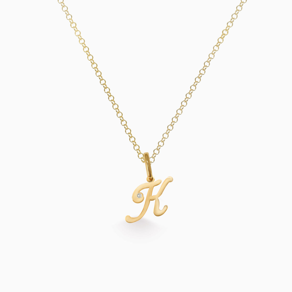 Dije en oro amarillo de 18K letra K con un brillante de 0.0075 carats en total.