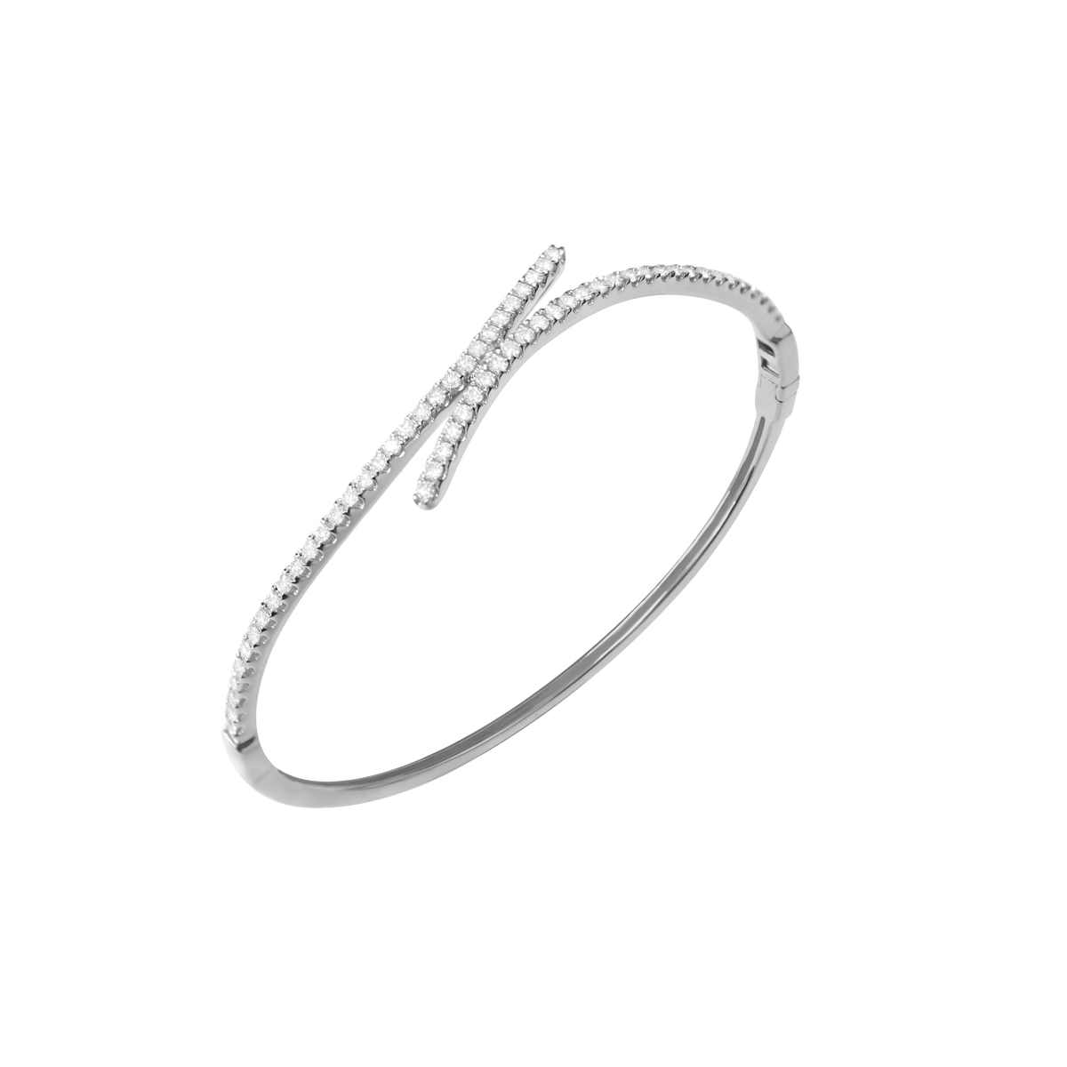 Pulsera en oro blanco de 18K bangle con curvas entrelazadas con brillantes 1.04 carats en total con broche cajón lateral.