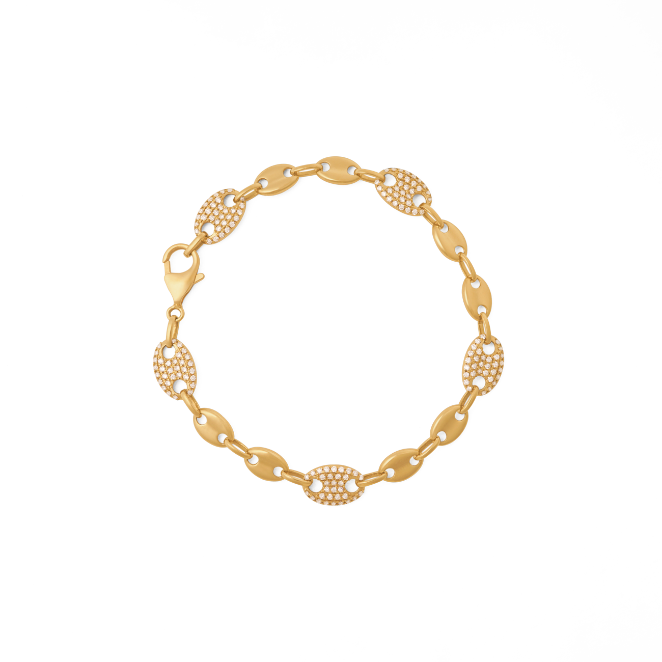 Pulsera oro amarillo de 18k eslabones ovales con brillantes y con eslabones metal intercalado con sistema regular bolita.